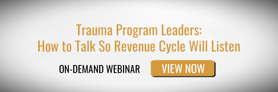 In my experience, simple steps to improve coding and charge capture will result in significant revenue improvements for trauma. The more you can improve the trauma program’s financial stewardship, the more likely you will get a sympathetic hearing from hospital executives about new financial needs.